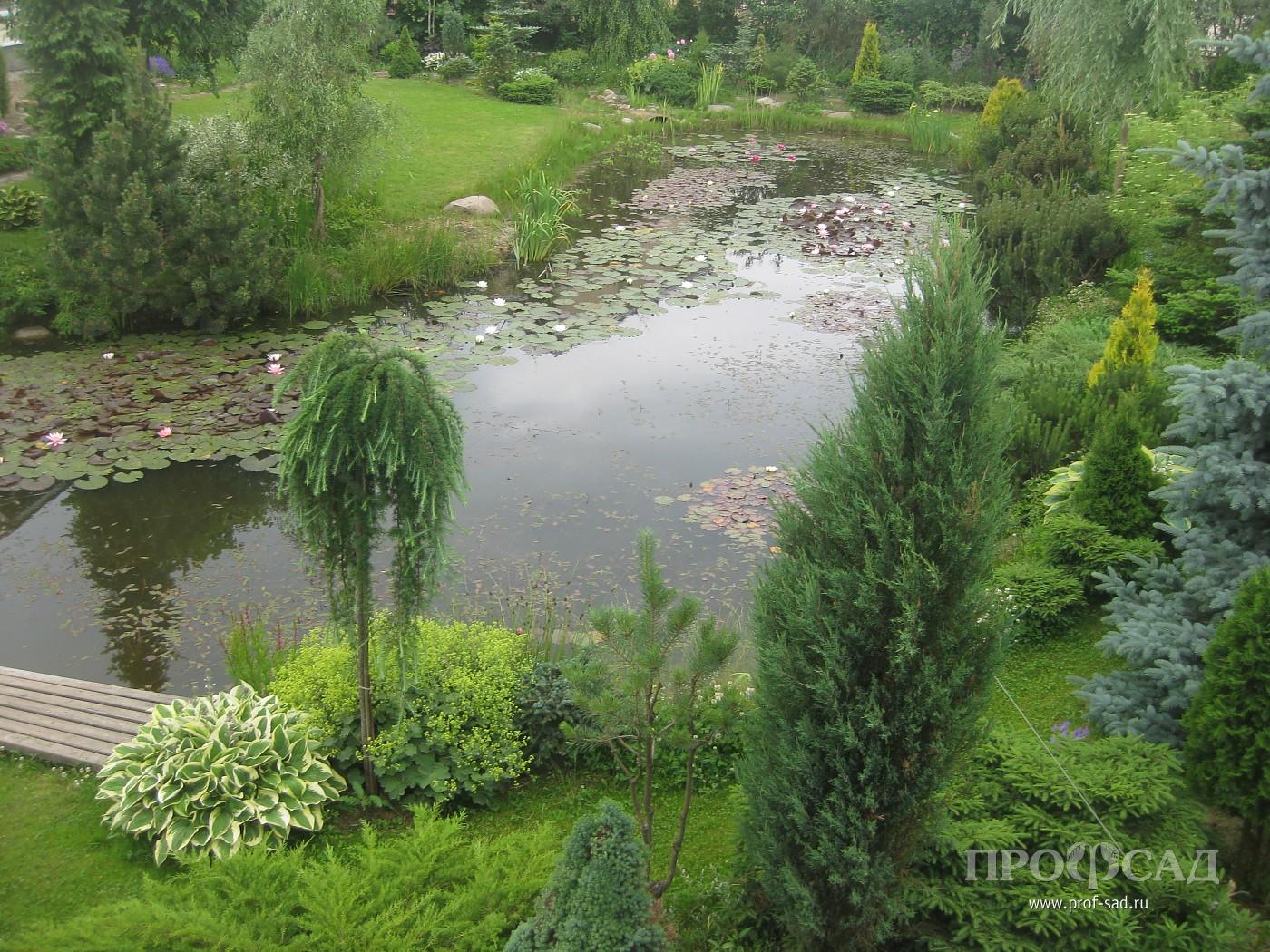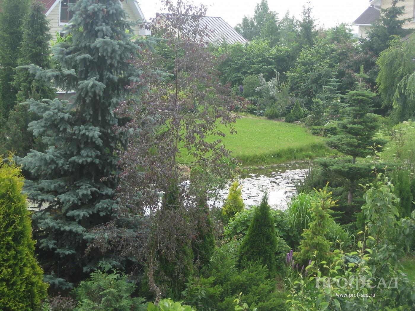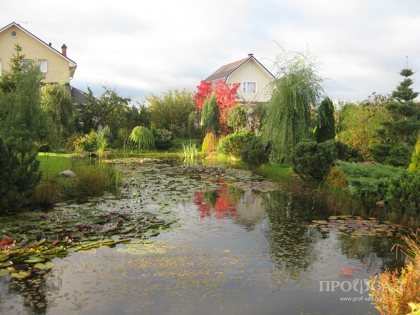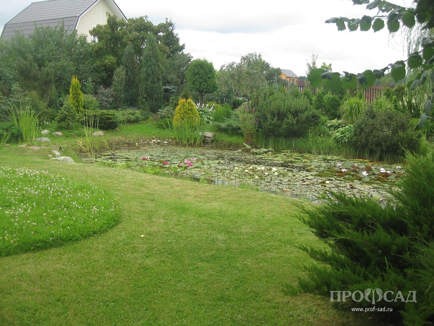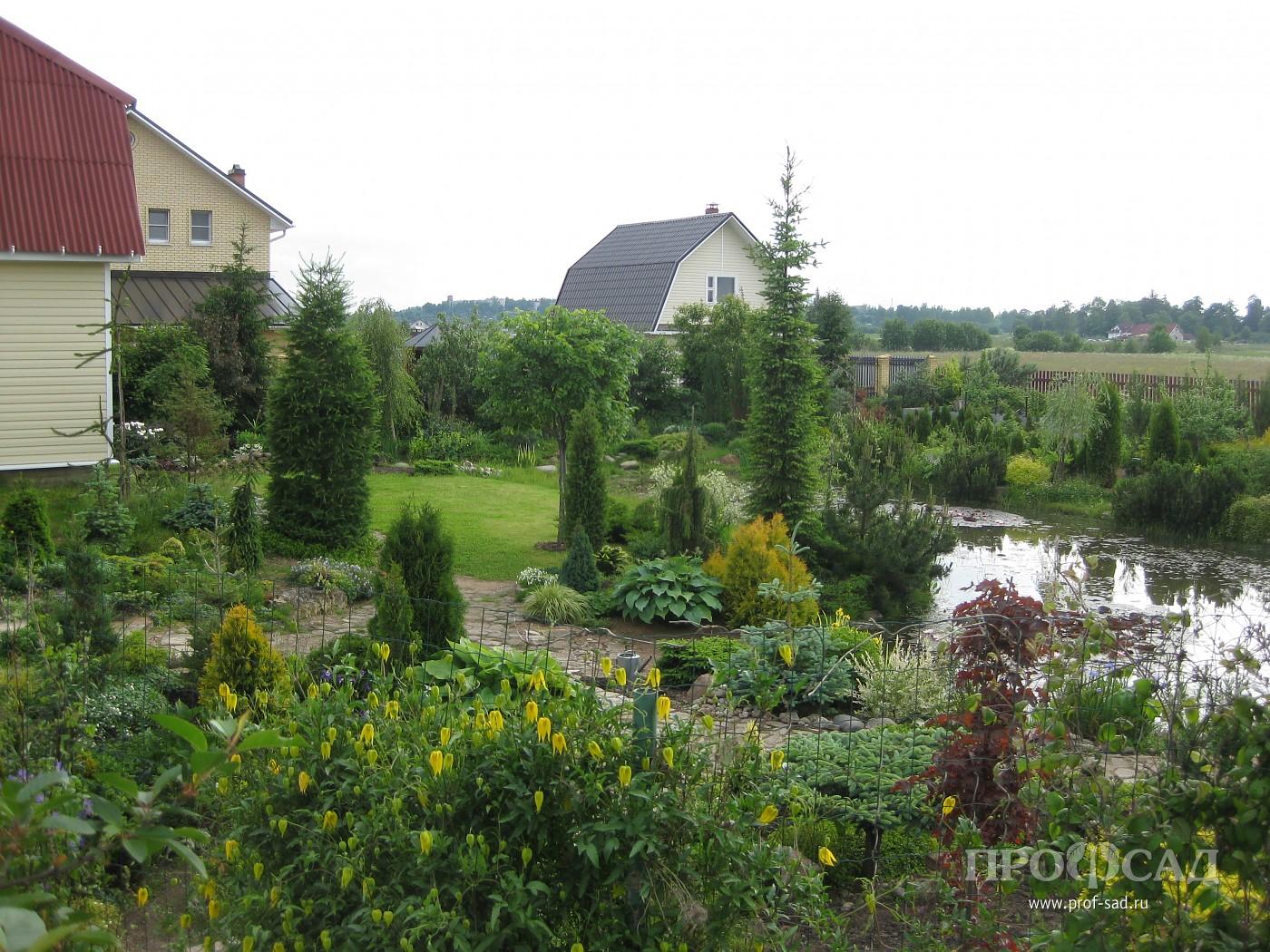 Участок мы приобрели в 1997 году. При выборе ориентировались на удобный транспорт и близость к городу, т. к. главным было строительство дома для постоянного проживания. И оказались в самом центре большого поля. Исторически это являлось частью Лугового парка, входившего в садово-парковый комплекс с системой накопительных прудов и каналом, питающим знаменитый фонтан Большой Самсон. Глубокий слой глины и регулярное подтопление не позволяли выращивать что-либо из культурных растений. Местные жители использовали луг под сенокос. Удивительно, несмотря на близость города, в 5-ти минутах езды от станции Новый Петергоф, луг облюбовали дикие гуси и весной останавливались на отдых. Летом гнездились чибисы и кулики, зимой бегали зайцы и лисы. Заросший высокой травой, без единого деревца или кустика луг прекрасно вписывался в общую панораму местности, для обозрения которой, царской семьёй был построен дворец Бельведер. В наше время застроена половина из 20-ти гектаров луга. Жить здесь удобно, но для сада, о котором мечтали, место оказалось проблемным. Было понятно, что без серьёзной подготовки на чистой глине сад не вырастить. Выбора не было, пришлось главный минус попытаться превратить в плюс. Выкопали котлован глубиной 2,5м и длинной 20м. Осенью после обильных дождей котлован заполнился водой и за последующие годы ни разу не пересыхал. Так просто можно сделать пруд только на глинистой почве. Вынутым грунтом приподняли северную часть участка, предварительно переместив верхний более плодородный слой на место запланированного плодового сада. Все 30 соток нашего сада спланированы так, чтобы дождевая и талая вода стекали в пруд и по канавкам уходили в общую дренажную систему. Большой размер пруда позволяет содержать его без лишних хлопот и самое главное, даёт возможность выращивать водные растения. Нимфеи, высаженные прямо в грунт без корзин и горшков, хорошо цветут и не требуют ухода. Пруд с прилегающими посадками и домом отделяют зону отдыха от остальной территории. Здесь производились первые посадки. Как основные, использовались растения, выращенные из семян и черенков. Пока подрастали первые, готовилось место под посадку следующих растений. Почву готовили основательно. Для этого купили старенький самосвал и несколько лет завозили землю, песок, торф и компост.