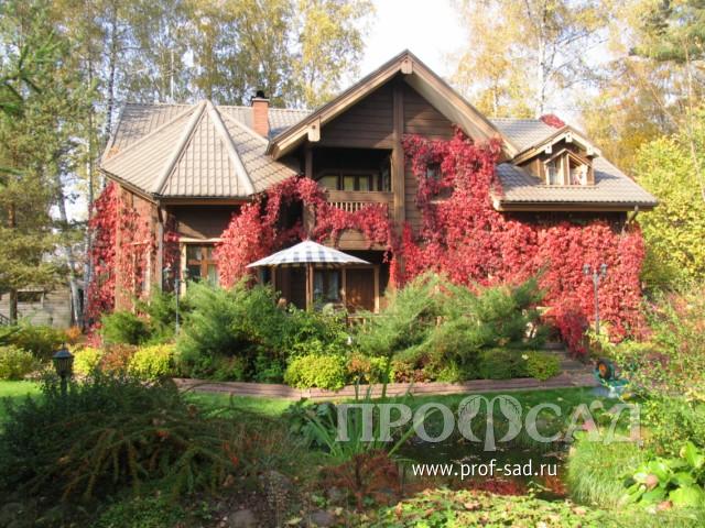 В саду используется большое количество лиан. Не секрет, что за достаточно короткий срок некоторые из них могут покрыть немалую поверхность, создав при этом какой-то неповторимый уют, который другими растениями мог бы создаваться долгие годы. Здесь есть и девичий виноград пятилисточковый и его форма "Энгельмани", более изящная и потому более подходящая, например, для ажурных решёток или фонарей, есть жимолость каприфоль, древогубец круглолистный, лимонник китайский, актинидия коломикта.