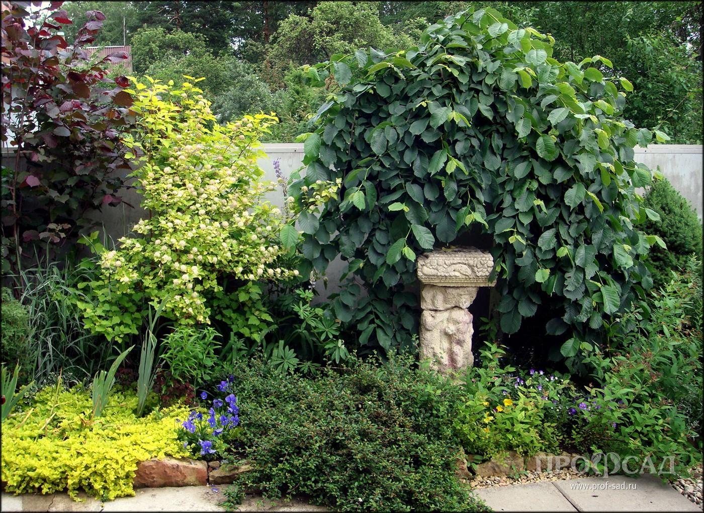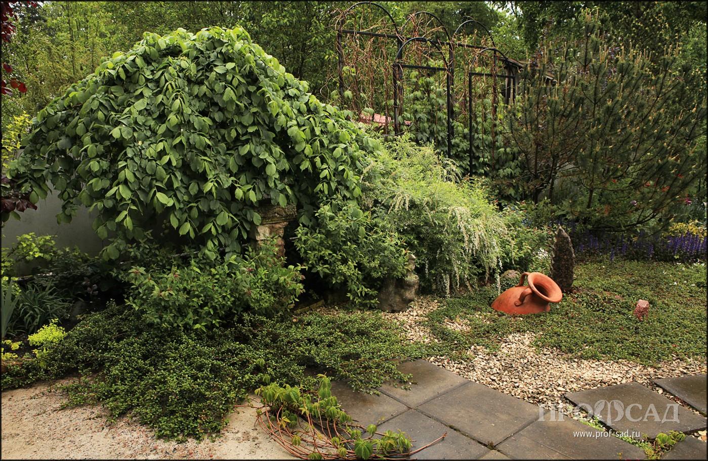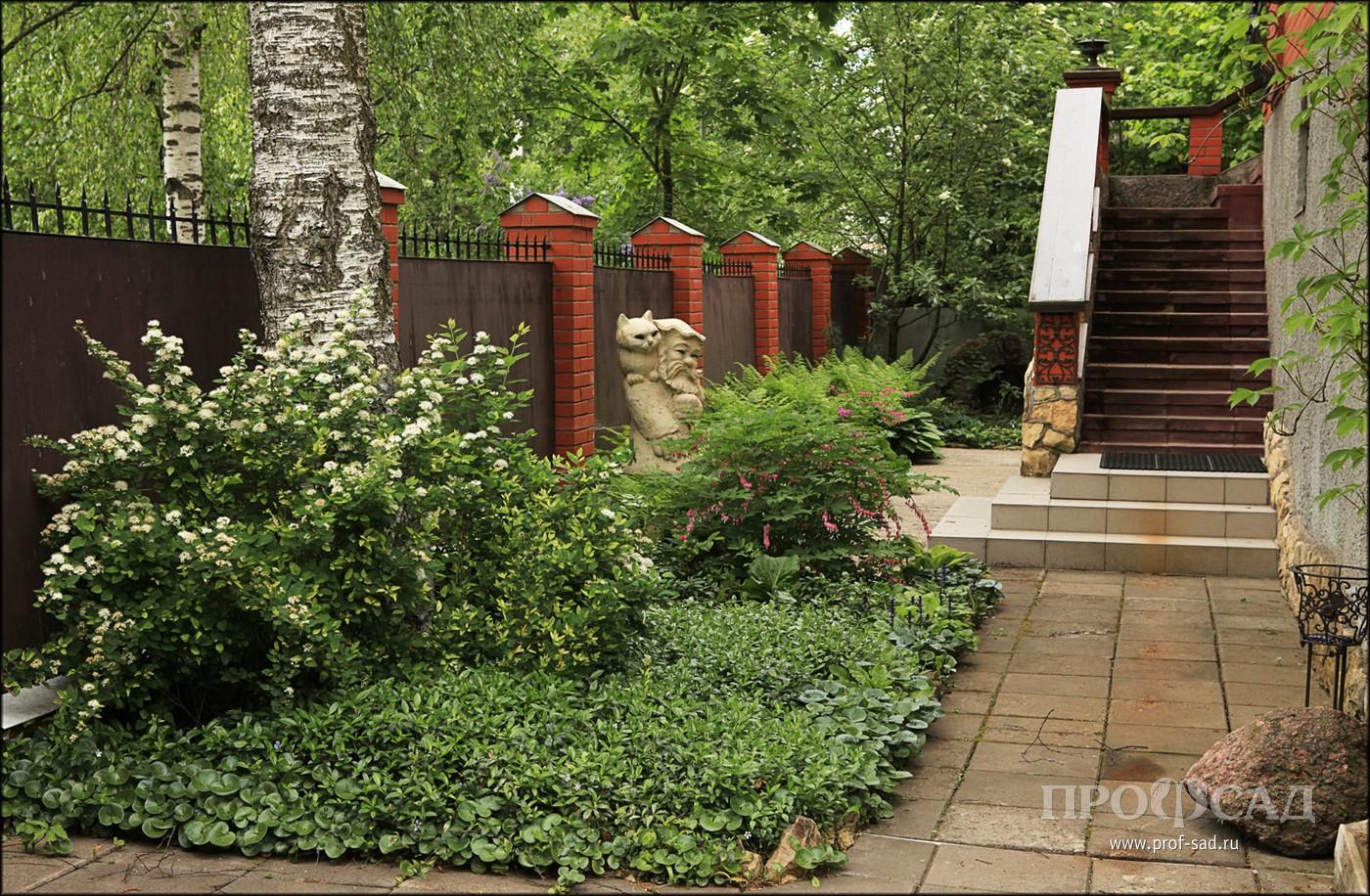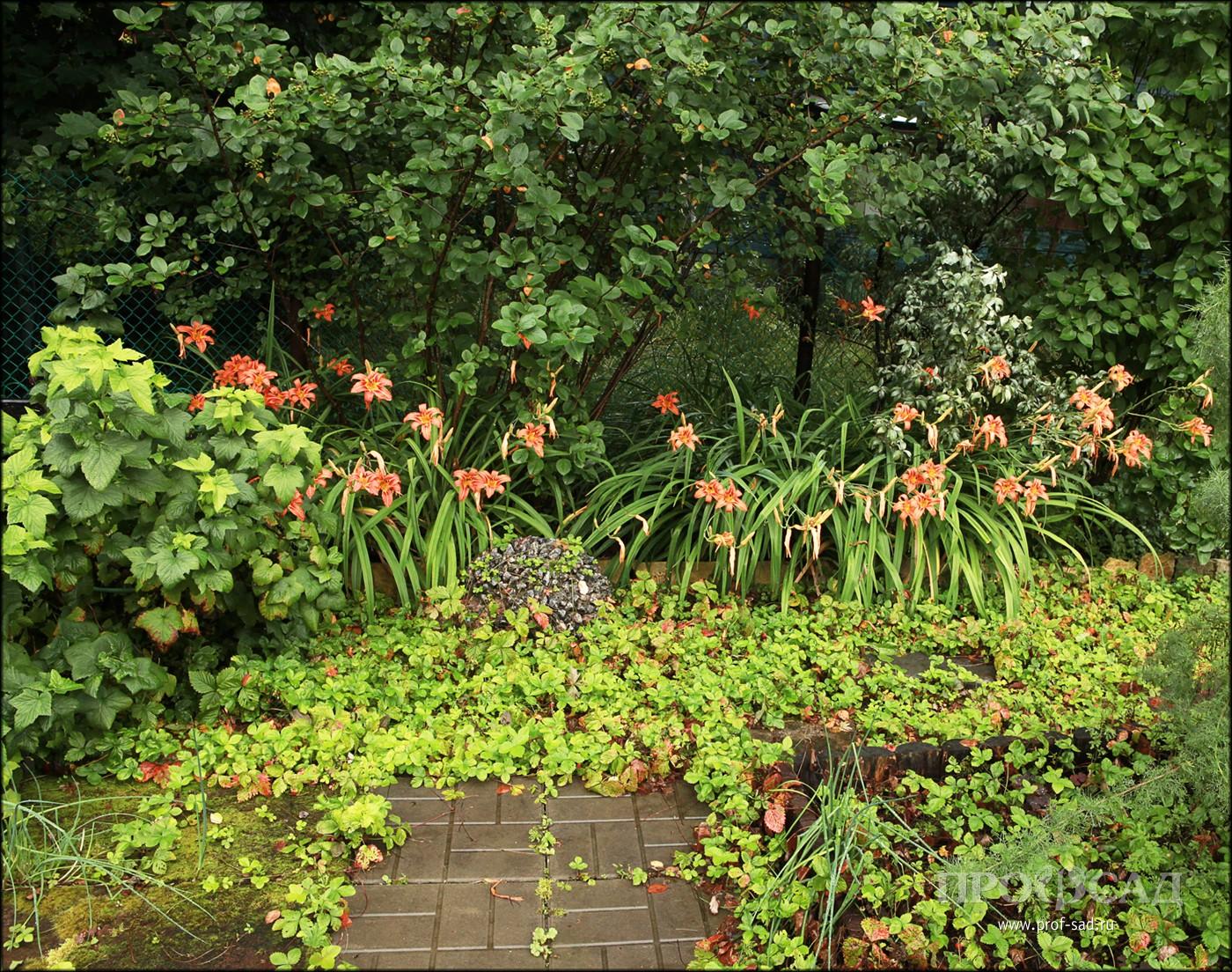 Я просто стала выбирать теневыносливые растения. Мне пришлось отказаться от роскошных розовых кустов, и сделать небольшую клумбу на самом солнечном месте, высадив туда менее прихотливые почвопокровные розы. Я использовала кусты парковых роз для создания границ между зонами. Мне очень нравятся пейзажные парки, поэтому я постаралась вписать свой небольшой сад в уже существующую среду. Чтобы он не сливался с окружающей зеленой стеной, я активно использую пестролистные и краснолистные формы кустарников и многолетников. Мне удалось добиться эффекта непрерывного цветения. – от крокусов до георгин. Маленькие размеры сада позволяют добиться этого небольшим кол-вом экземпляров. Кроме того, я активно использую растения в контейнерах, например, те же георгины. Это позволяет и лучше сохранить их во время заморозков, и размещать их в разных уголках. В оформлении сада применяются только натуральные материалы: дерево темных тонов, камень, металл. Такие же, как и в оформлении дома, его интерьеров. Мне очень близок природный стиль, но с несколько южным налетом. Поэтому я позволяю прижившимся у меня растениям самим выбирать место для существования. Я только стараюсь слегка подправить и согласовать интересы соседей.