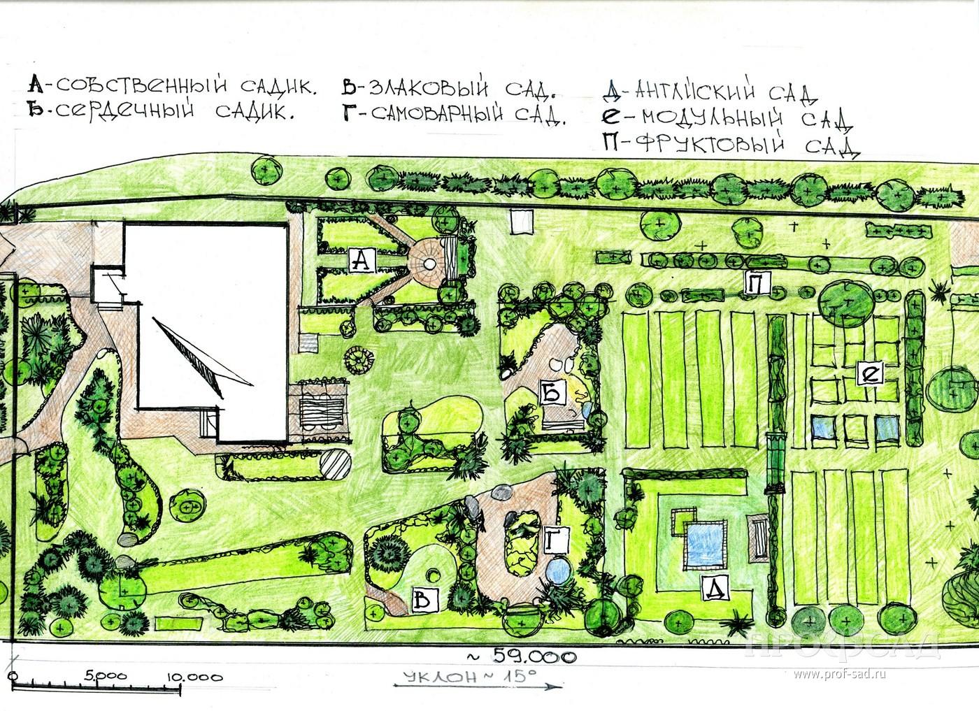 Задача первая и главная — сад — это среда обитания семьи, но поскольку по образованию я художник-архитектор и привыкла всё чертить и рассчитывать, все нужные зоны были сразу определены и жёстко заложены в планировку сада.