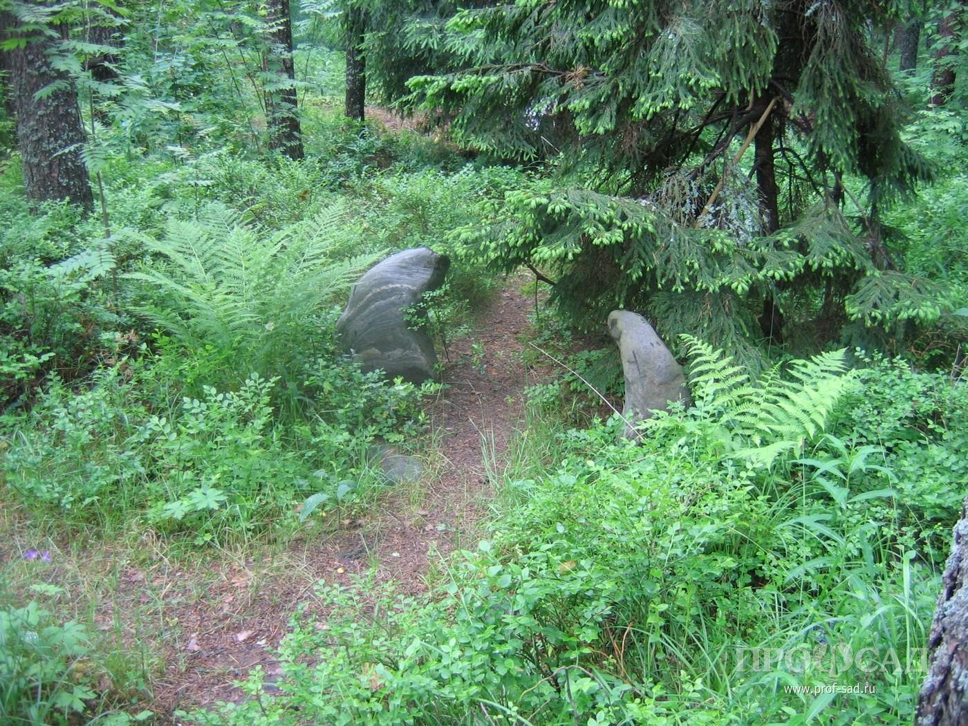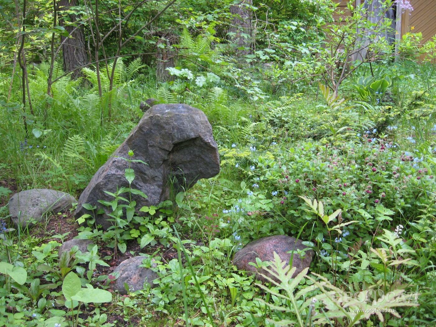 Сразу же оговорюсь, что речь идет не о чащобе, где бродят медведи и волки (всего лишь разнообразные птицы, белки, ежи, бывало забредет лиса, а однажды пожаловал даже лось), а всего лишь о садовом участке на Карельском перешейке площадью около 20 соток. Когда-то там действительно был сплошной лес, но в начале 50 г.г. хозяин участка, мой отец, выстроил дачу, для чего деревья пришлось частично вырубить. А уже в 60 г.г. по мере того, как двум романтически настроенным и совершенно неопытным садоводам удавалось отвоевывать у оставшегося леса метр за метром, возник сад, который вы и можете сейчас наблюдать. Сад создавался методом проб и ошибок, без определенного изначального плана. Стратегическая идея, однако, была: мыслилось, что причудливо извивающиеся между деревьев песчаные "ручейки" будут "омывать" своего рода каменистые островки (фото 6, 7), на которых…